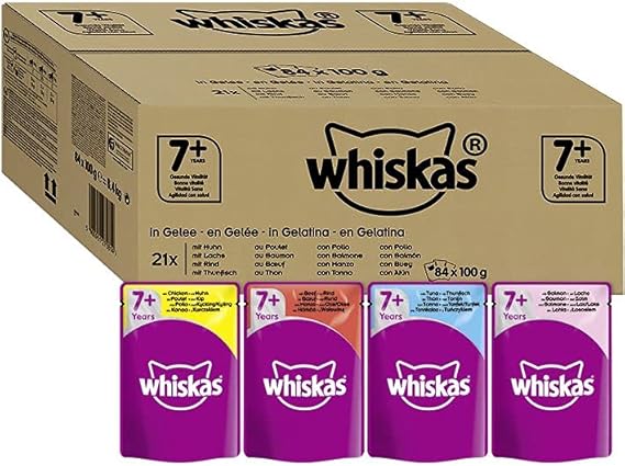 Whiskas Cat Food 7 For Cats From 7 Years And Older 4 Flavors In Jelly 84 Sachet 8 4 G Amazon De Pet Supplies